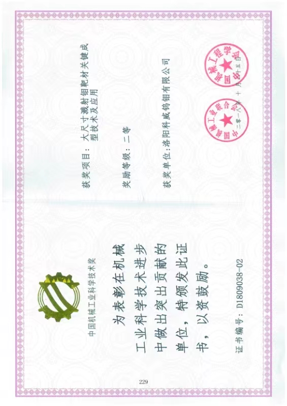 3、 新兴产品的研发、电致变色智能玻璃三元合金靶材的研发;高温高强韧超大尺寸TZM合金产品研发.